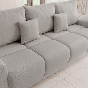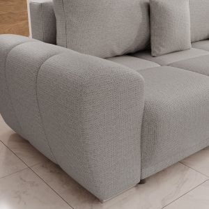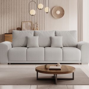 Sofa BEGA to połączenie nowoczesnego stylu, wygody i funkcjonalności. Tapicerowana trwałą tkaniną Aragon 83 w eleganckim, jasnoszarym odcieniu, stanowi praktyczny i stylowy element wyposażenia każdego wnętrza – salonu, pokoju gościnnego czy domowego biura.