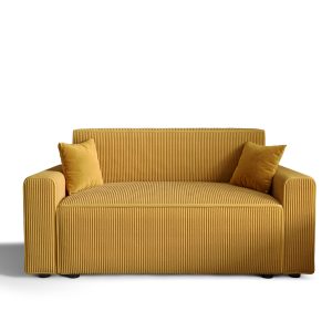 Sofa MIRA BIS w tkaninie POSO (sztruks) posiada funkcję spania oraz pojemnik na pościel. Wykonana na piance i sprężynie typu B.